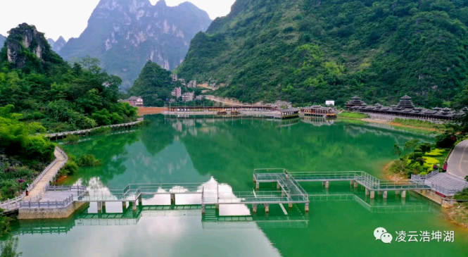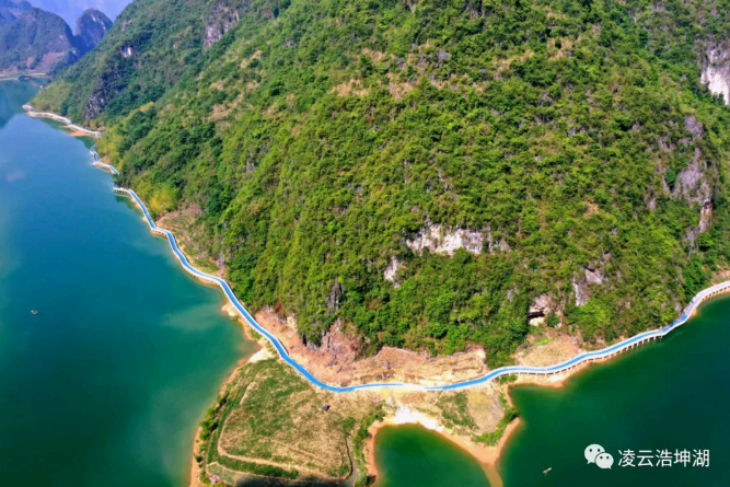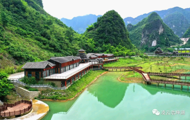 浩坤湖旅游度假区,位于广西百色市凌云县伶站乡浩坤村境内,距伶站高速出口5公里。浩坤湖境内湖山秀美、岸线曲折,岛渚星罗,几十座山峰紧紧挟携着一湖碧水;湖中独峰耸立,小岛显露,岛屿交错,水天一色,以湖泊休闲、风情体验、异地养老、养生度假、康体运动、湿地科普为主要功能,深度融入名仕休闲文化、山水生态文化、长寿养生文化、瑶壮民族文化的新型旅游度假区,先后获得国家湿地公园、国家4A级景区、广西生态旅游示范区。