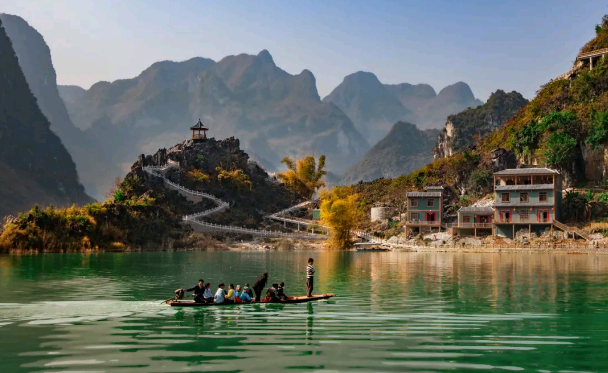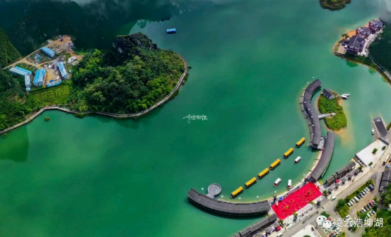 主要景点:坡贴游客集散中心、浩坤村史馆、棕榈洞、猪笼洞、浩坤观景台、渔人码头、浩高风雨廊桥、湿地科普中心、无影桥、云汉峰、天门山、对弈峰、半山居、姻缘台、钓鱼岛、渔翁亭、鱼仙亭、三合观景台、三合乡村旅游区、环湖骑行绿道。